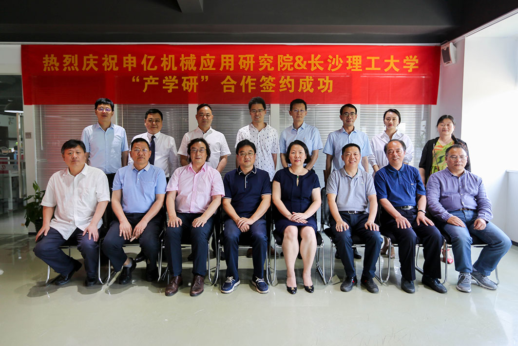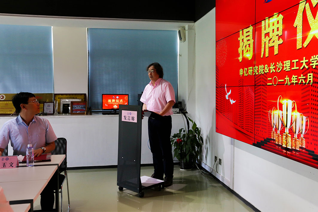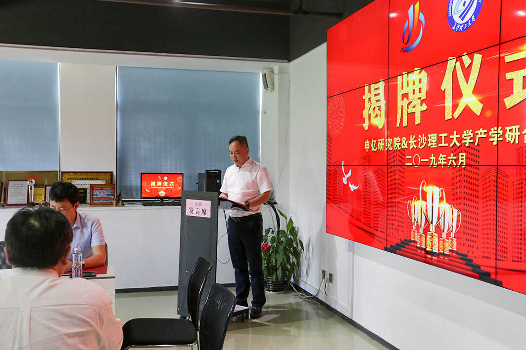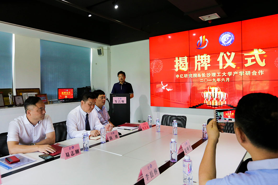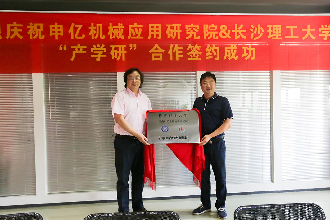 儀式上,長(zhǎng)沙理工大學(xué)與申億機(jī)械應(yīng)用研究院共同對(duì)產(chǎn)學(xué)研合作創(chuàng)新基地揭牌。